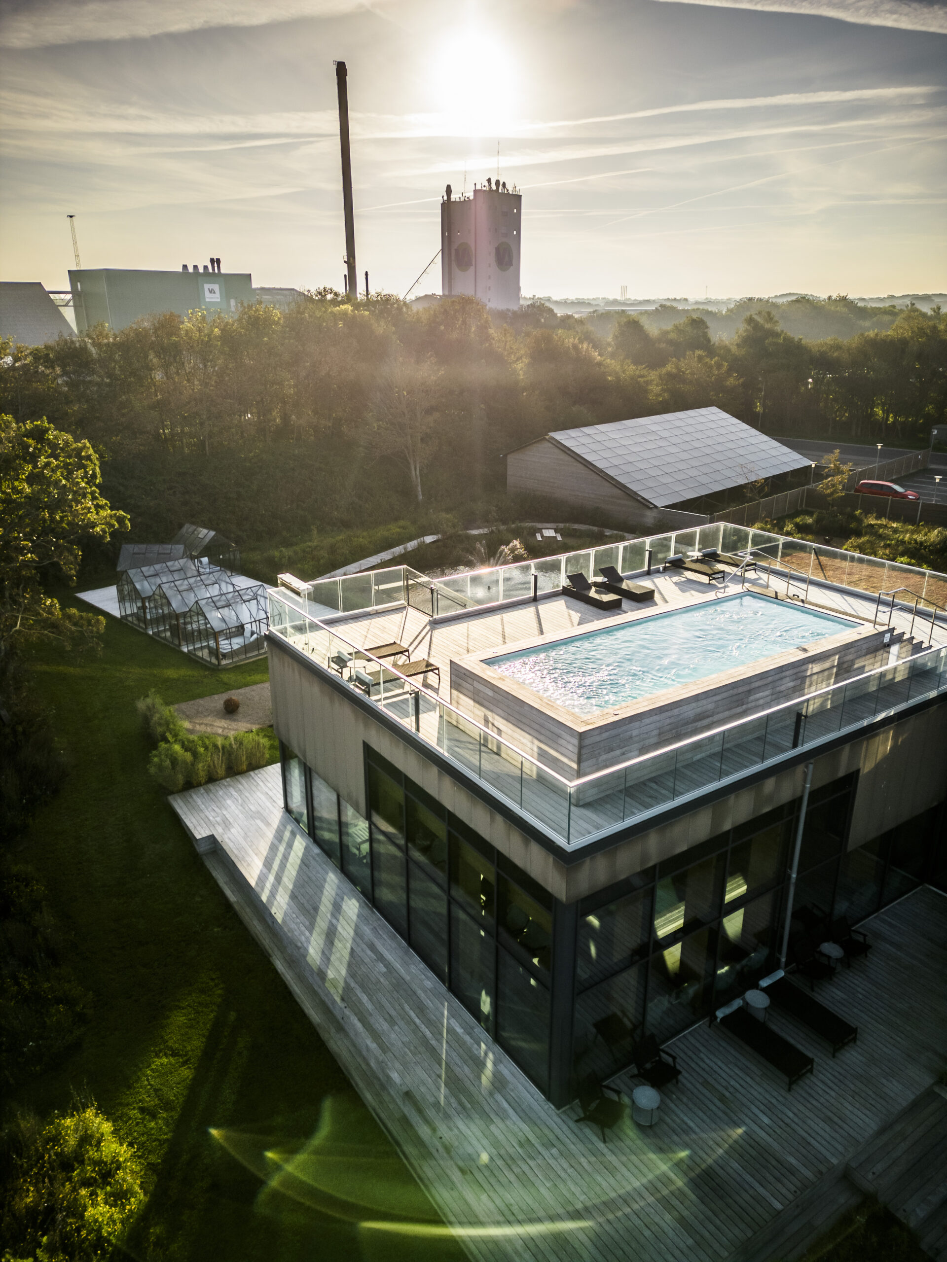 Es verfügt über ein Restaurant, eine Bar und einen komfortablen Spabereich mit mehreren Saunen, großem Pool und warmem Outdoorpool auf dem Dach. Der Spabereich ist tageweise zubuchbar und nicht in der Übernachtung enthalten.